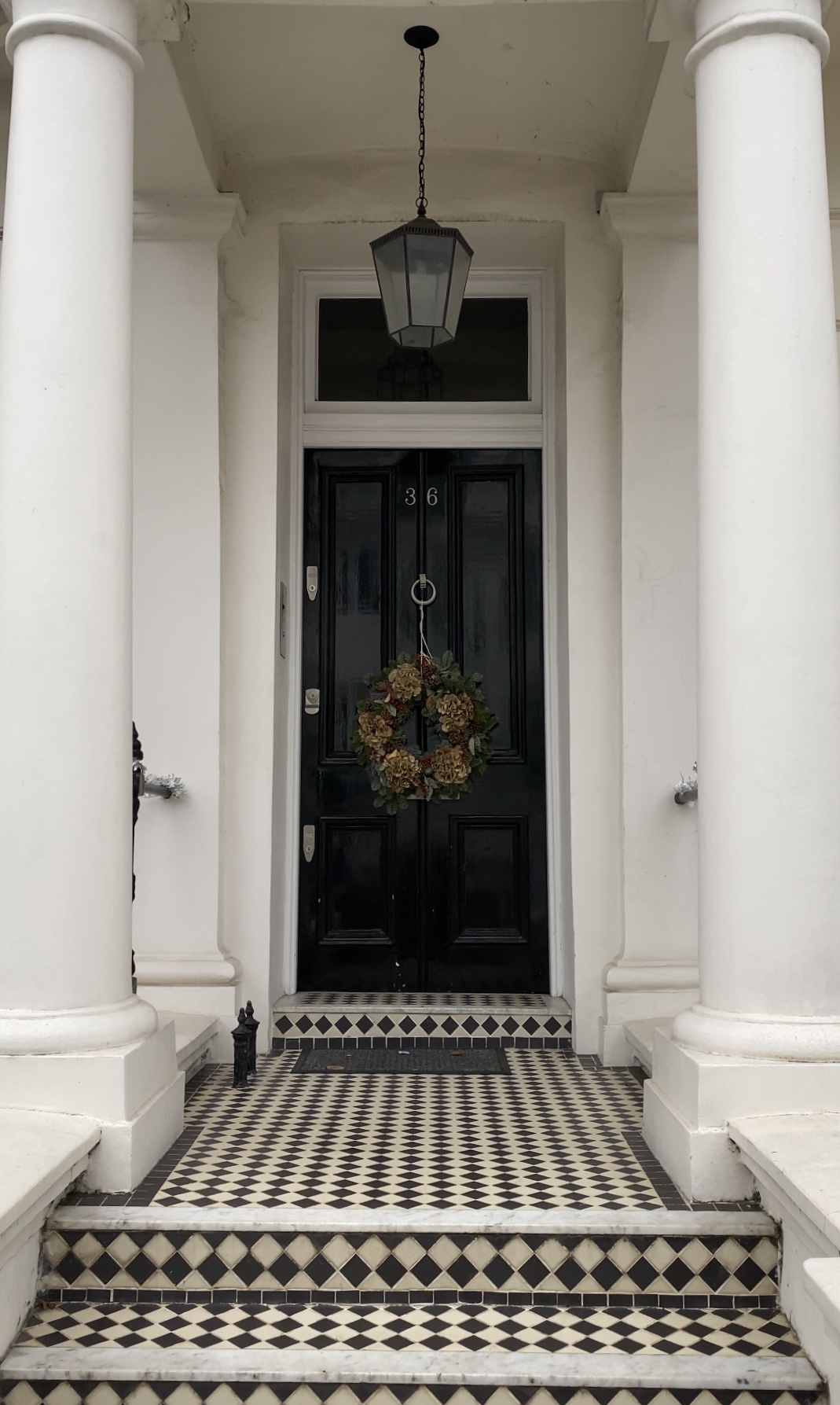 Last but not least, is this Christmas showstopper, the crème de la crème of decorative doorways. This wreath display is so flawless, I can hardly believe it’s real – from the intricate vine tiling to the ornate iron-work rippling each door, this London doorway is a showstopper au natural.